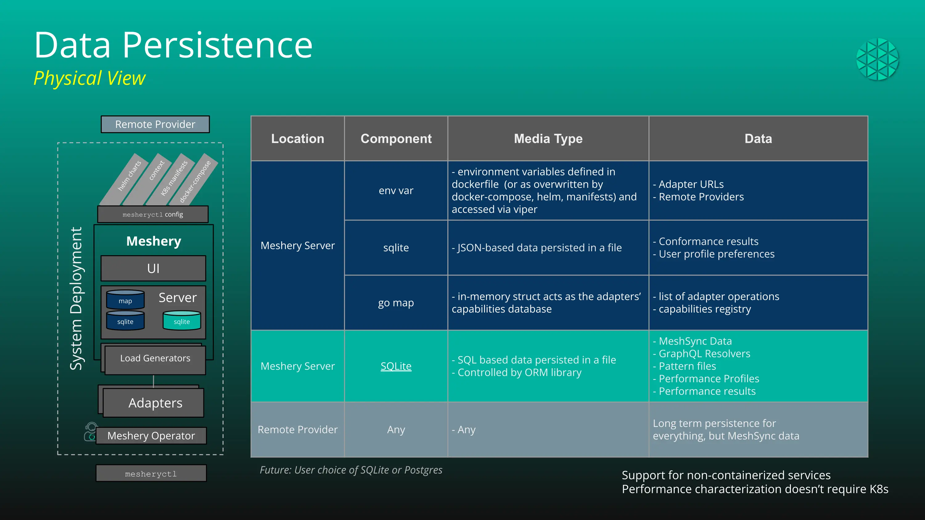 Meshery Database has several kinds of database implementations to support various usecases. They are listed below: {% assign sorted = site.adapters | sort: “project_status” | reverse %}