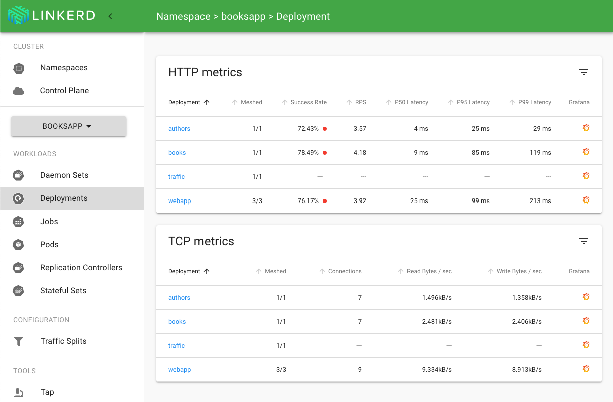 Linkerd Books is a sample Ruby based application. It is designed to demonstrate the various value propositions, including debugging, observability, and monitoring of your infrastructure. It can be used to scope out your mesh’s efficiency and for debugging.